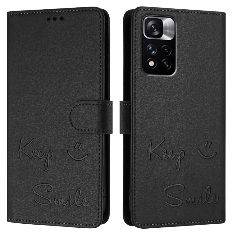Funda de Cuero Rfid con Relieve de Sonrisa Nfc para Xiaomi Poco X4 (Negra)