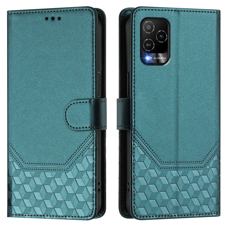 Funda de Cuero RFID con Relieve en Panal para Blu View 5 Pro (Verde Pavo Real)