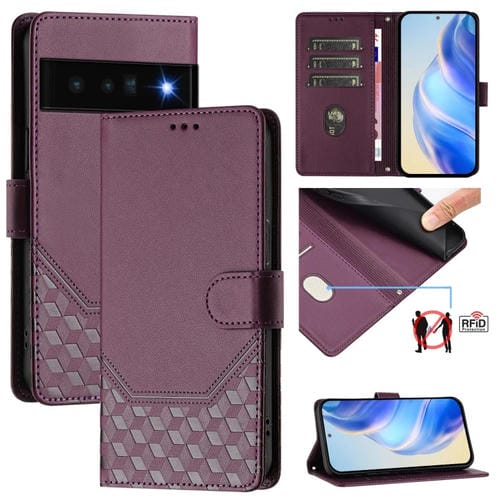 Funda de Cuero Rfid con Relieve en Panal para Google Pixel 6 Pro (Violeta)