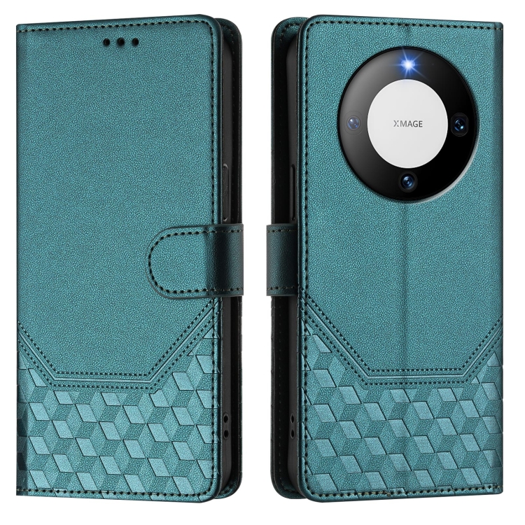 Funda de Cuero Rfid con Relieve en Panal para Huawei Mate 60 (Verde Pavo Real)