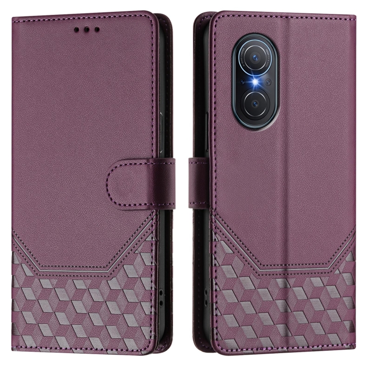 Funda de Cuero Rfid con Relieve en Panal para Huawei Nova 9 Se Honor 50 Se (Violeta)