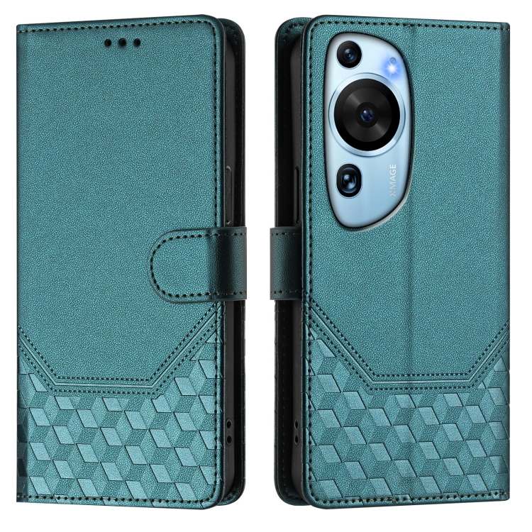 Funda de Cuero Rfid con Relieve en Panal para Huawei P60 (Verde Pavo Real)