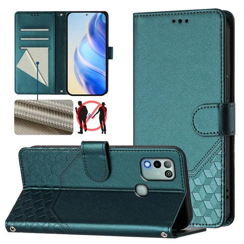 Funda Cuero Rfid con Relieve Panal para Infinix Hot 10 Play y Hot 11 Play (Verde Pavo Real)