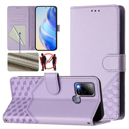Funda de Cuero RFID con Relieve en Panal para Infinix Hot 10T y Hot 10S (Morado Claro)