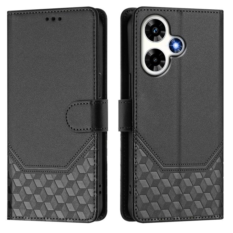 Funda de Cuero Rfid con Relieve en Panal para Infinix Hot 30 4G (Negra)
