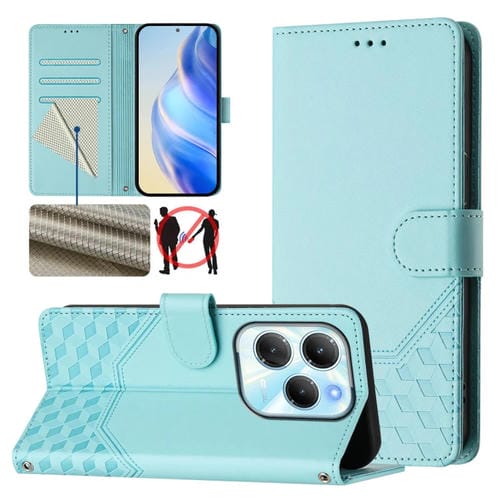 Funda de Cuero Rfid con Relieve en Panal para Infinix Hot 40 4G y Hot 40 Pro 4G (Verde Menta)