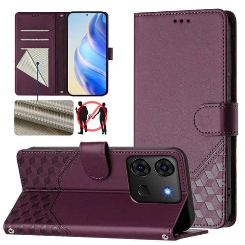 Funda de Cuero Rfid con Relieve en Panal para Infinix Smart 7 Plus/7 HD/7 India (Violeta)