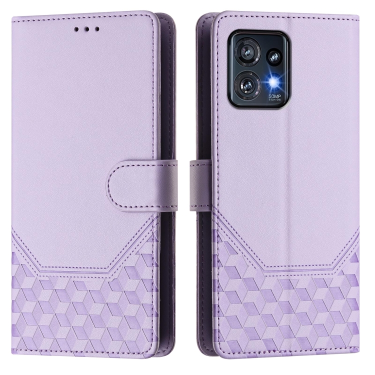 Funda de Cuero RFID con Relieve en Panal para Motorola Edge+ 2023/40 Pro (Morado Claro)