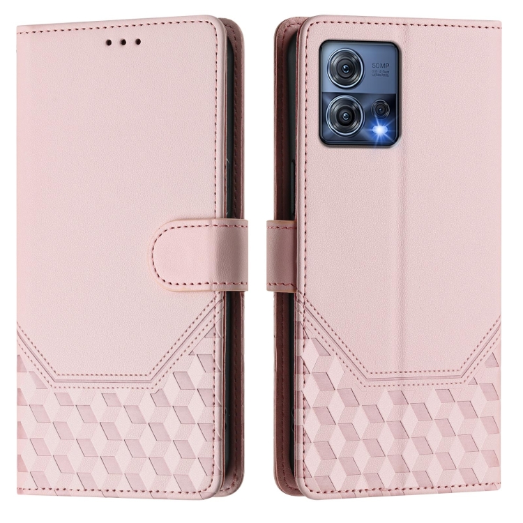 Funda de Cuero Rfid con Relieve en Panal para Motorola Edge 30 Fusion/Moto S30 Pro (Rosa)