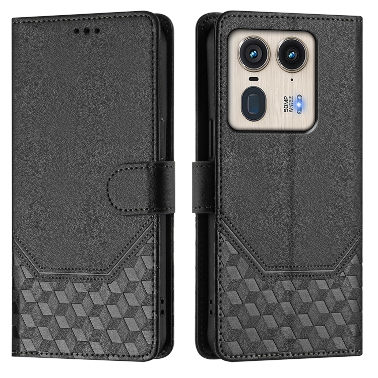 Funda de Cuero Rfid con Relieve en Panal para Motorola Edge 50 Ultra/X50 Ultra (Negra)