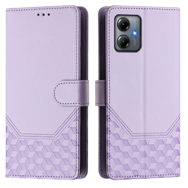 Funda de Cuero Rfid con Relieve en Panal para Motorola Moto G14 4G y G54 5G (Morado Claro)