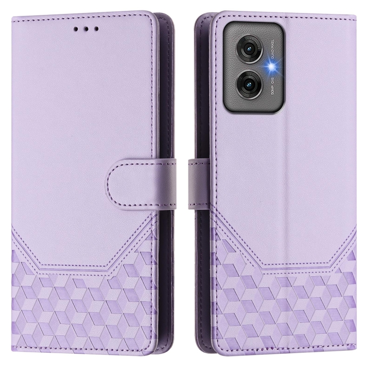 Funda de Cuero Rfid con Relieve en Panal para Motorola Moto G55 (Morado Claro)