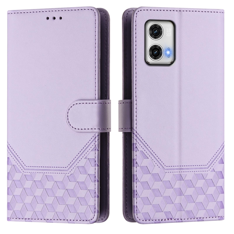 Funda de Cuero Rfid con Relieve en Panal para Motorola Moto G73 5G (Morado Claro)