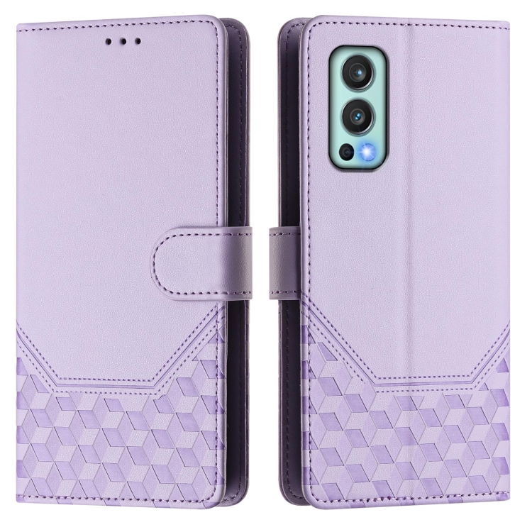 Funda de Cuero Rfid con Relieve en Panal para OnePlus Nord 2 (Morado Claro)