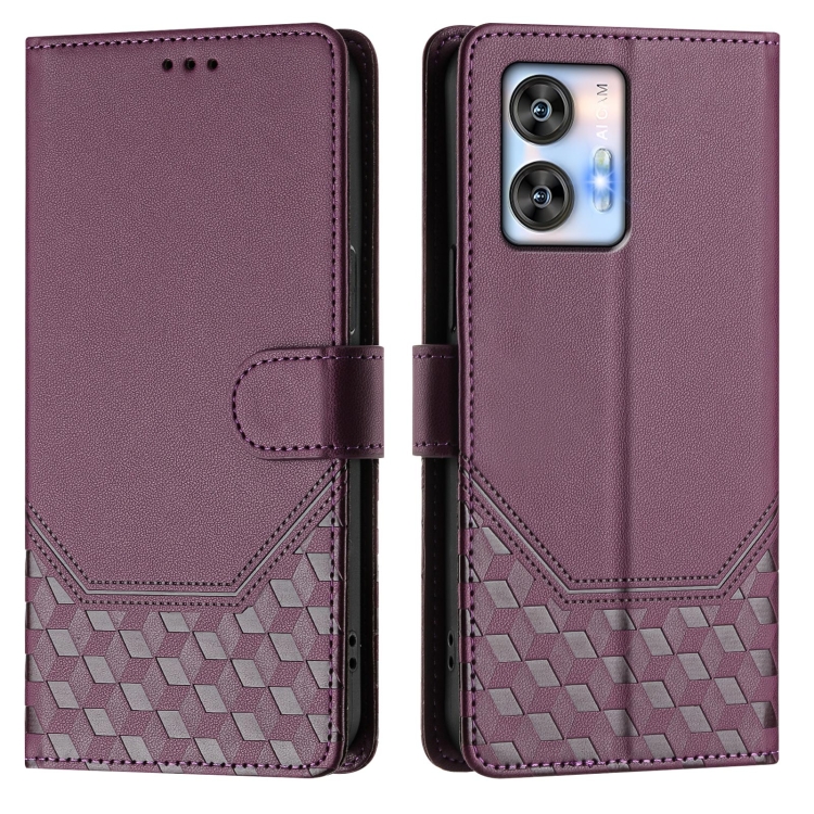 Funda de Cuero Rfid con Relieve en Panal para Oukitel C35 (Violeta)