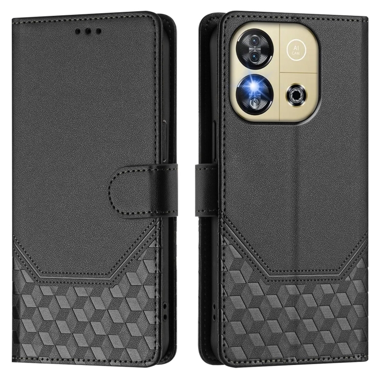Funda de Cuero Rfid con Relieve en Panal para Oukitel C57S (Negra)