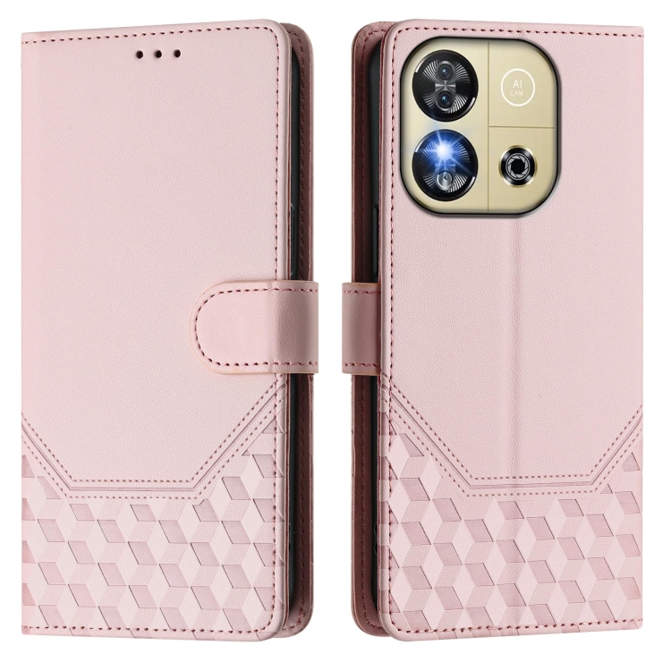 Funda de Cuero Rfid con Relieve en Panal para Oukitel C57S (Rosa)