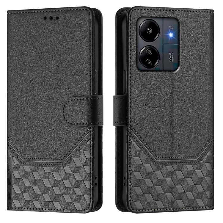 Funda de Cuero Rfid con Relieve En Panal para Redmi 13C 4G (Negra)