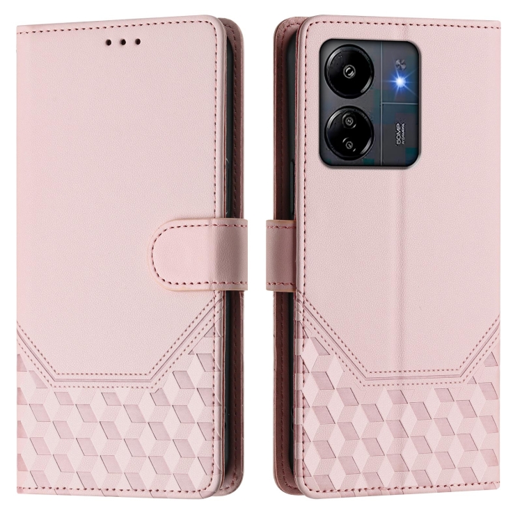 Funda de Cuero Rfid con Relieve En Panal para Redmi 13C 4G (Rosa)