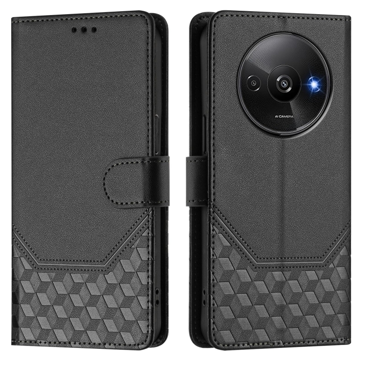 Funda de Cuero Rfid con Relieve En Panal para Redmi A3 4G Global/A3X 4G (Negra)