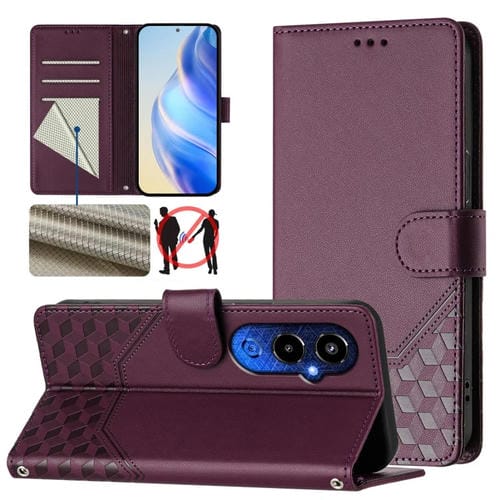 Funda de Cuero Rfid con Relieve en Panal para Tecno Pova 4 Pro 4G (Violeta)