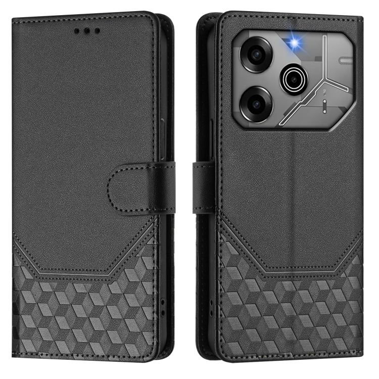 Funda de Cuero Rfid con Relieve en Panal para Tecno Pova 6 5G y 6 Pro 5G (Negra)
