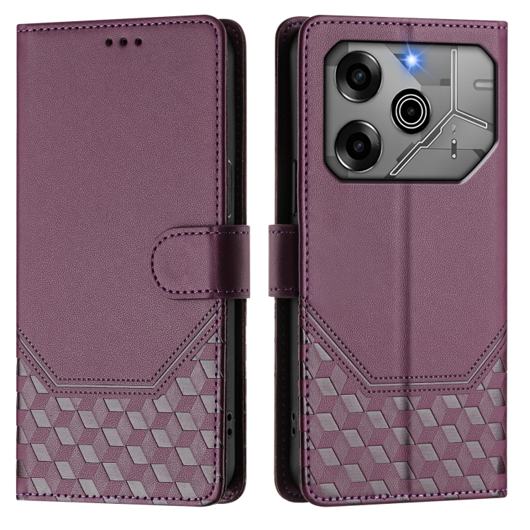 Funda Cuero Rfid Relieve Panal para Tecno Pova 6 5G y 6 Pro 5G (Violeta)
