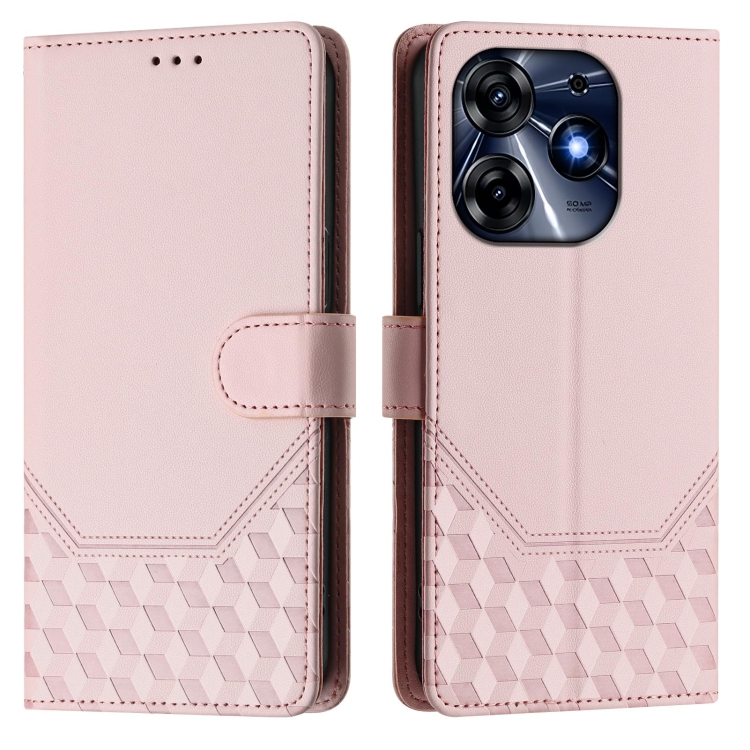 Funda de Cuero Rfid con Relieve en Panal para Tecno Spark 10 Pro 4G (Rosa)