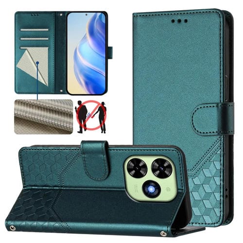 Funda de Cuero Rfid con Relieve en Panal para Tecno Spark Go 2024 4G (Verde Pavo Real)