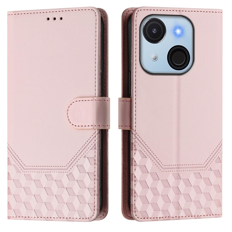 Funda de Cuero Rfid con Relieve en Panal para Teléfono Itel A50C (Rosa)