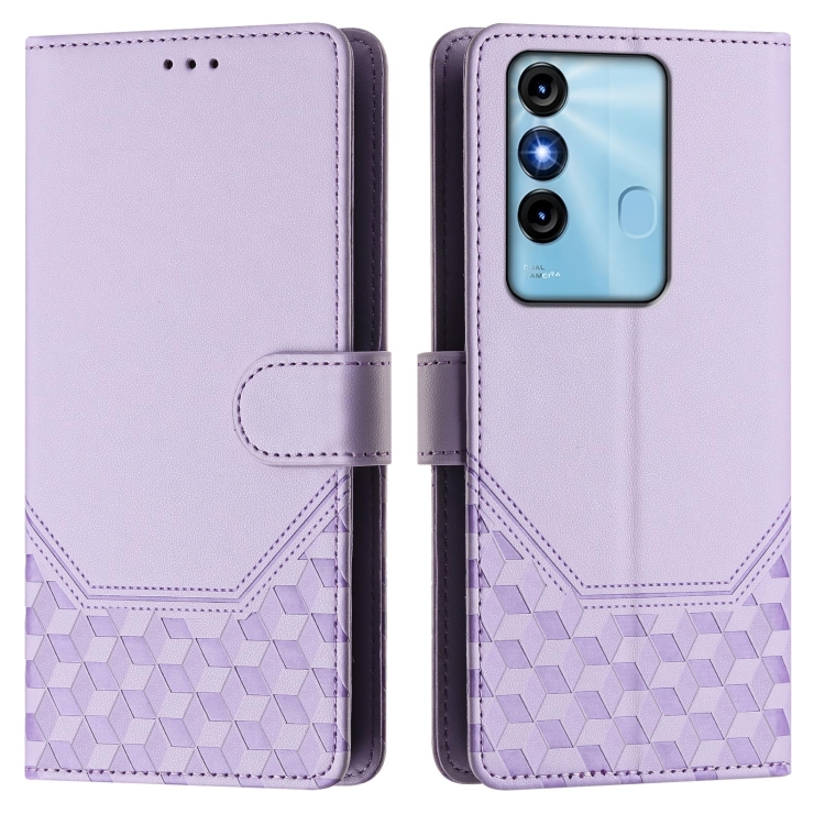 Funda de Cuero Rfid con Relieve en Panal para Teléfono Itel P38 (Morado Claro)
