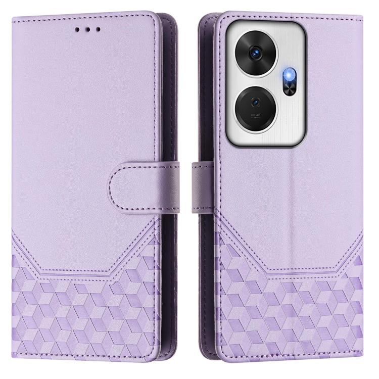 Funda de Cuero Rfid con Relieve en Panal para Teléfono Itel P55+ (Morado Claro)