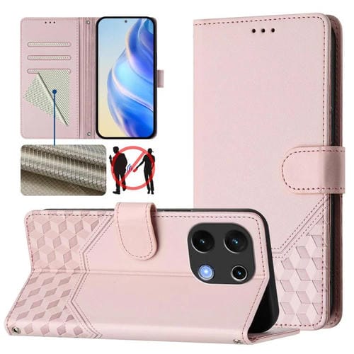 Funda de Cuero Rfid con Relieve en Panal para Umidigi Note 100 (Rosa)