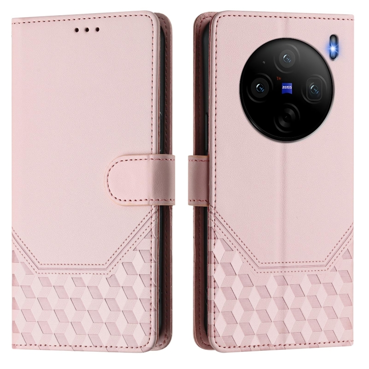 Funda de Cuero Rfid con Relieve En Panal para Vivo X100S 5G (Rosa)