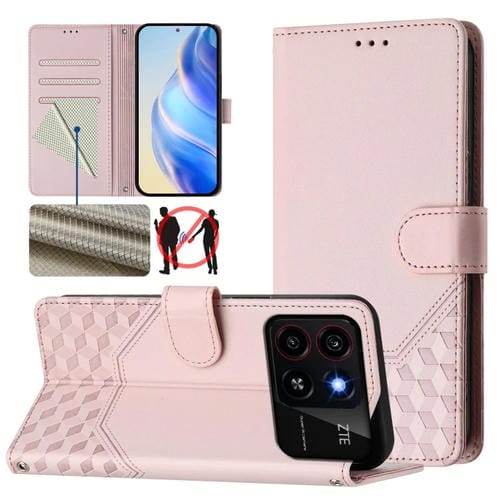 Funda de Cuero Rfid con Relieve en Panal para ZTE Blade A35/A55 (Rosa)