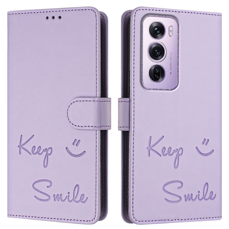 Funda de Cuero Rfid con Relieve Global Smile para Oppo Reno12 Pro (Morado Claro)