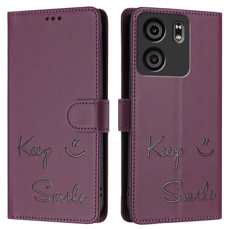 Funda de Cuero RFID con Relieve Smile para Blu View 5 (Violeta)