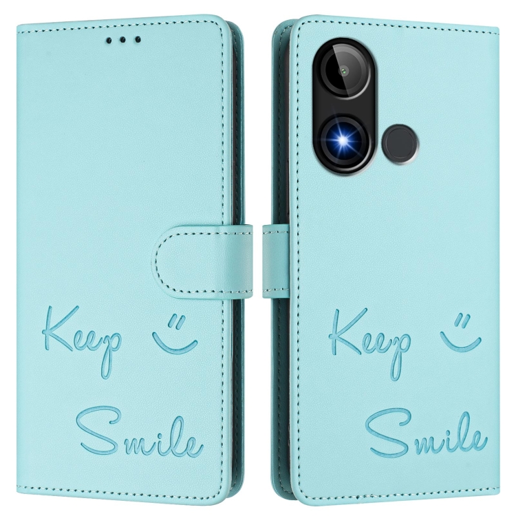 Funda de Cuero RFID con Relieve Smile para Teléfono Blu C9 (Verde Menta)