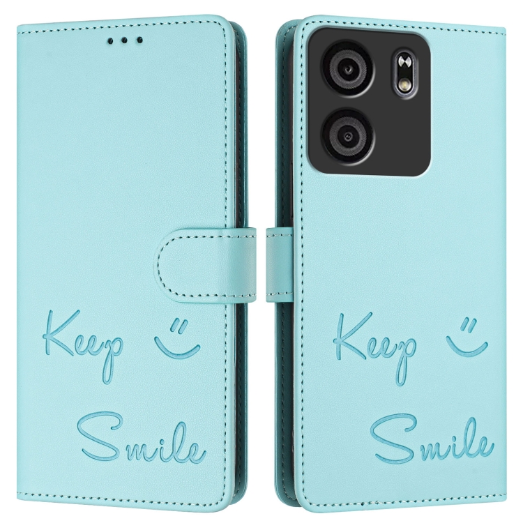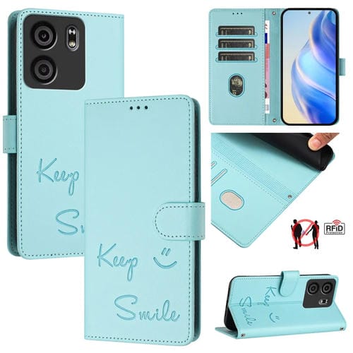 Funda de Cuero RFID con Relieve Smile para Teléfono Blu View 5 (Verde Menta)
