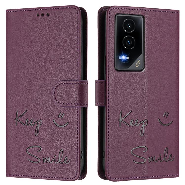 Funda de Cuero Rfid con Relieve Smile para Teléfono For Honor Gt (Violeta)