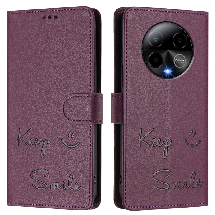 Funda de Cuero RFID con Relieve Sonriente para Blu Bold K50 (Violeta)
