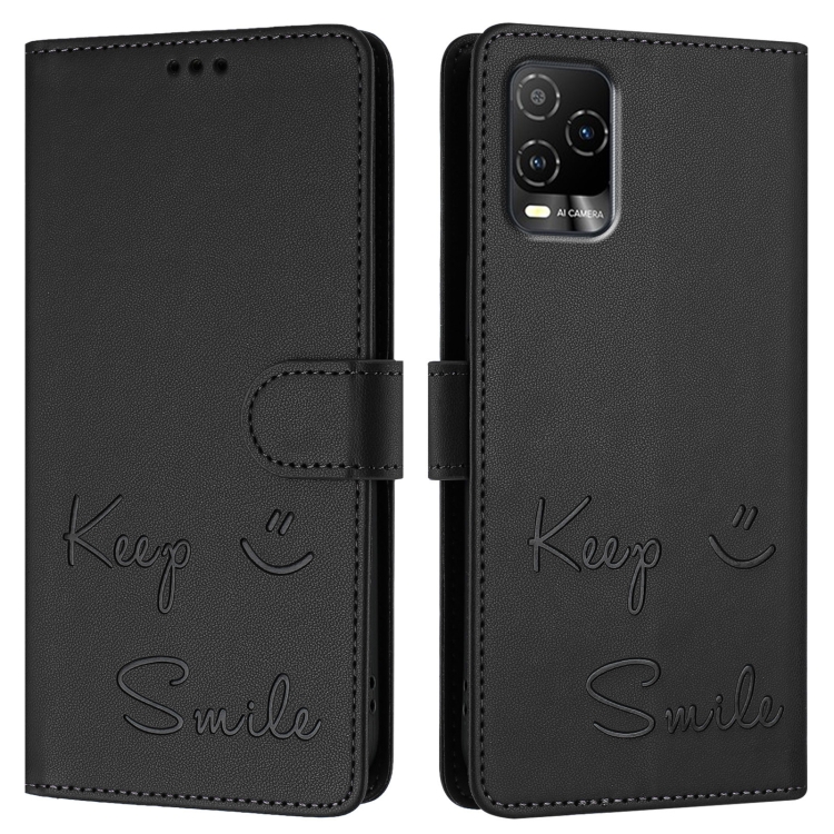 Funda de Cuero RFID con Relieve Sonriente para Blu View 5 Pro (Negra)