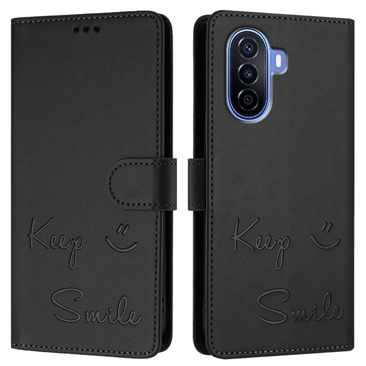 Funda de Cuero Rfid con Relieve Sonriente para Huawei Enjoy 50 4G (Negra)