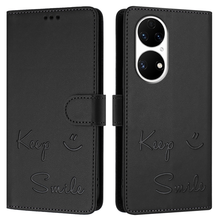 Funda de Cuero Rfid para Huawei P50 Pro con Relieve Sonriente (Negra)