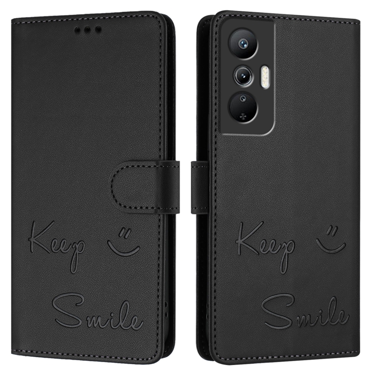 Funda de Cuero Rfid con Relieve Sonriente para Infinix Hot 20S y Hot 20 Pro (Negra)