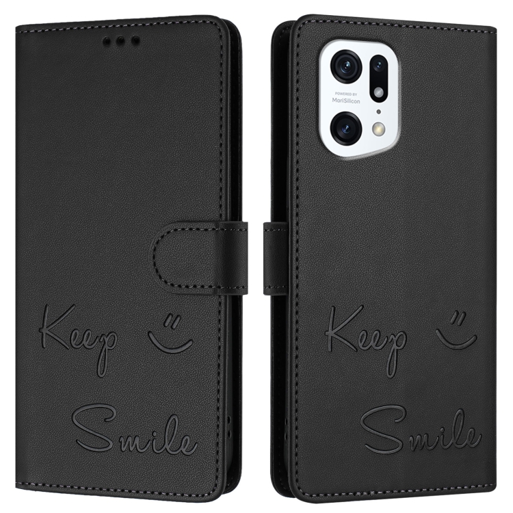 Funda de Cuero Rfid con Relieve Sonriente para Oppo Find X5 Pro (Negra)