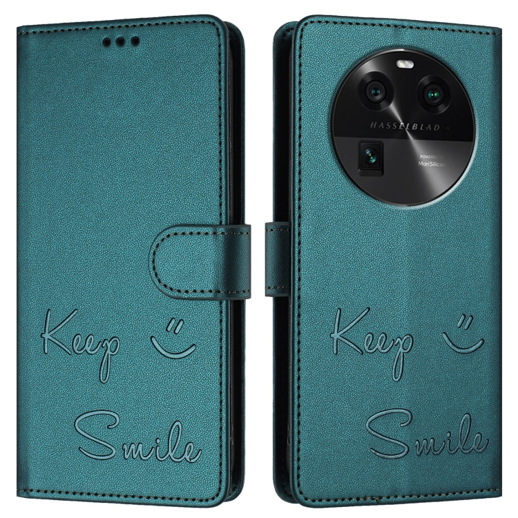 Funda de Cuero Rfid con Relieve Sonriente para Oppo Find X6 Pro (Verde Pavo Real)