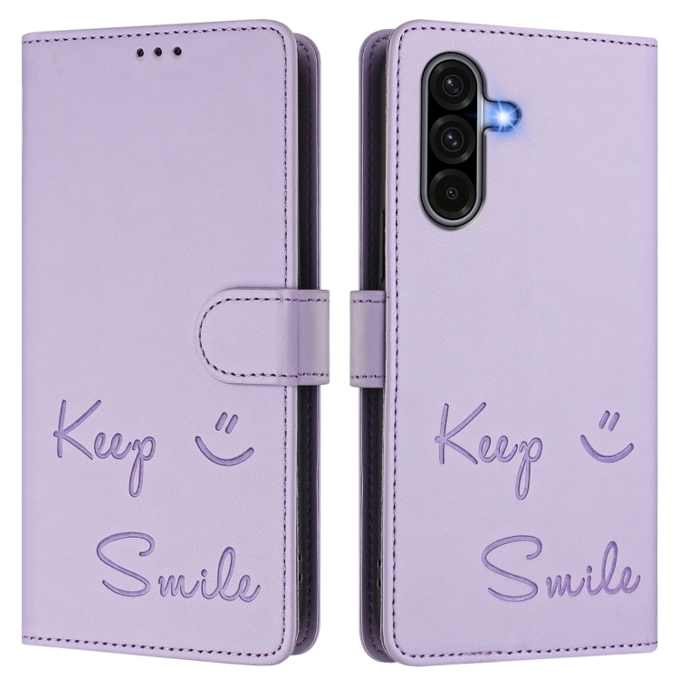 Funda Cuero Rfid Samsung Galaxy A36 5G Relieve Sonriente (Morado Claro)
