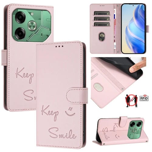 Funda de Cuero Rfid con Relieve Sonriente para Tecno Pova 6 4G (Rosa)