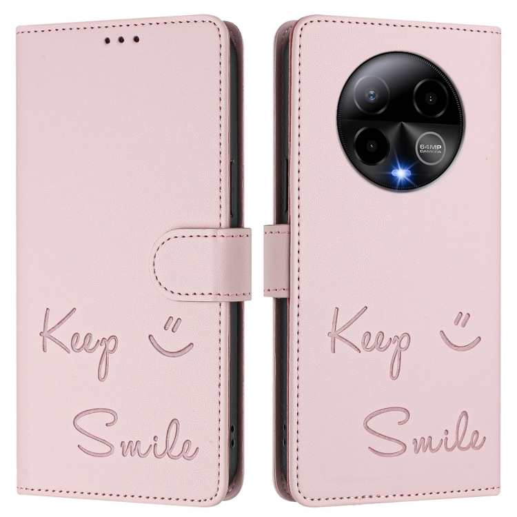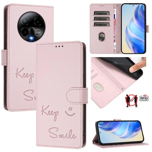 Funda de Cuero RFID con Relieve Sonriente para Teléfono Blu Bold K50 (Rosa)